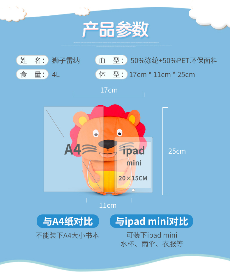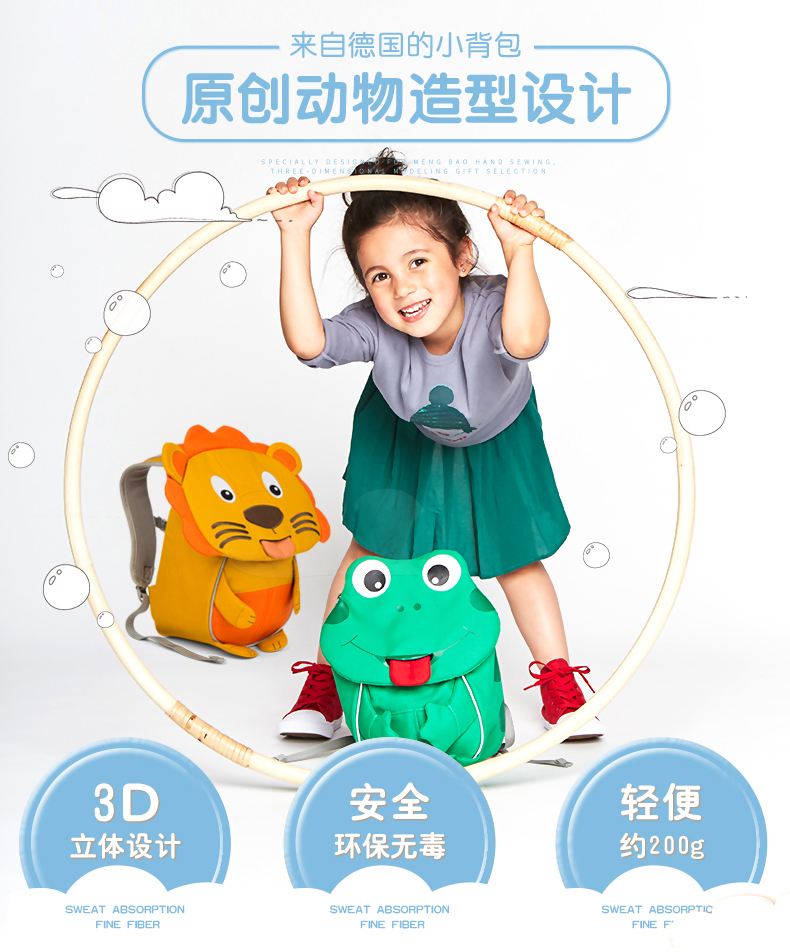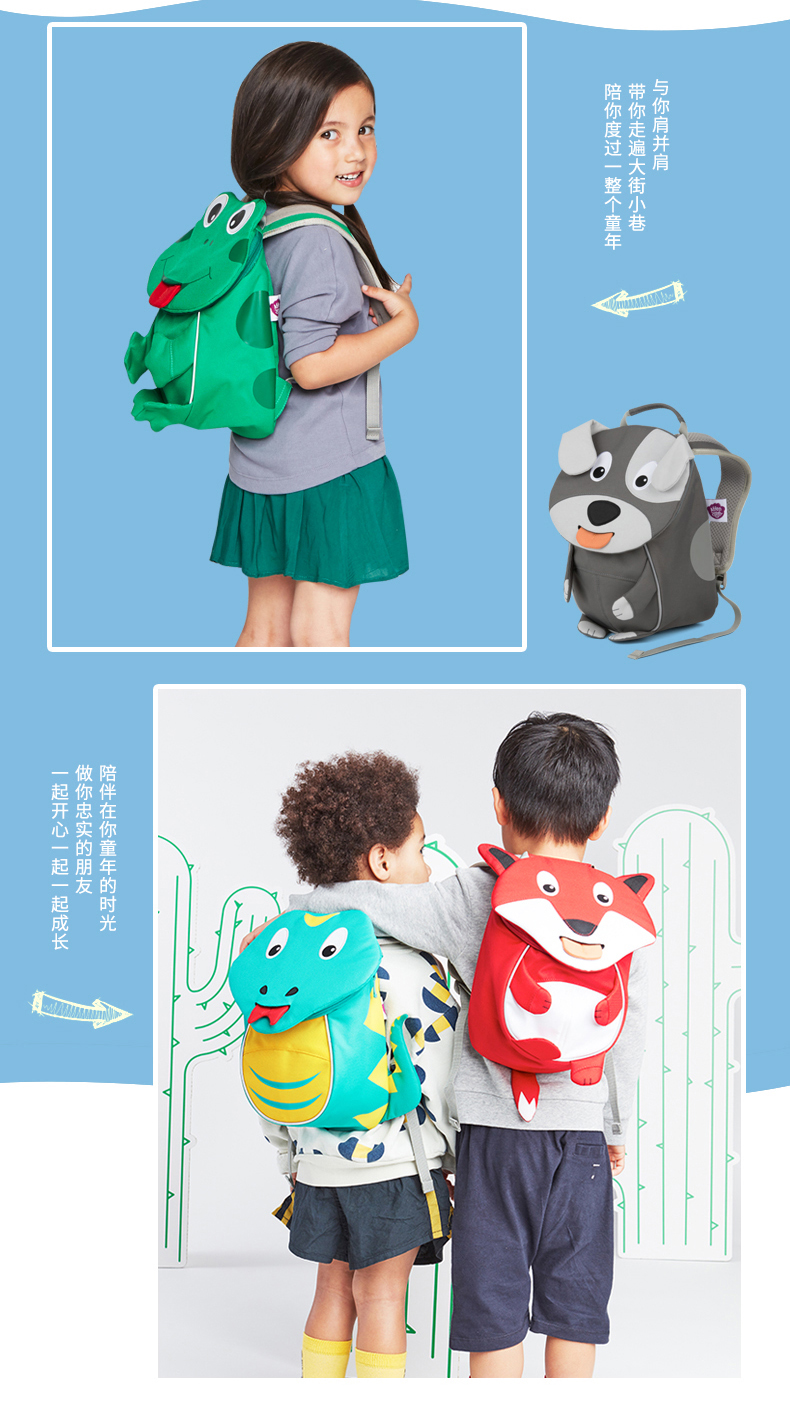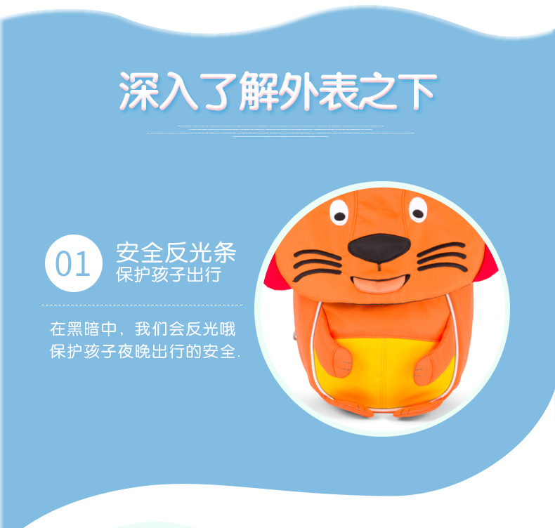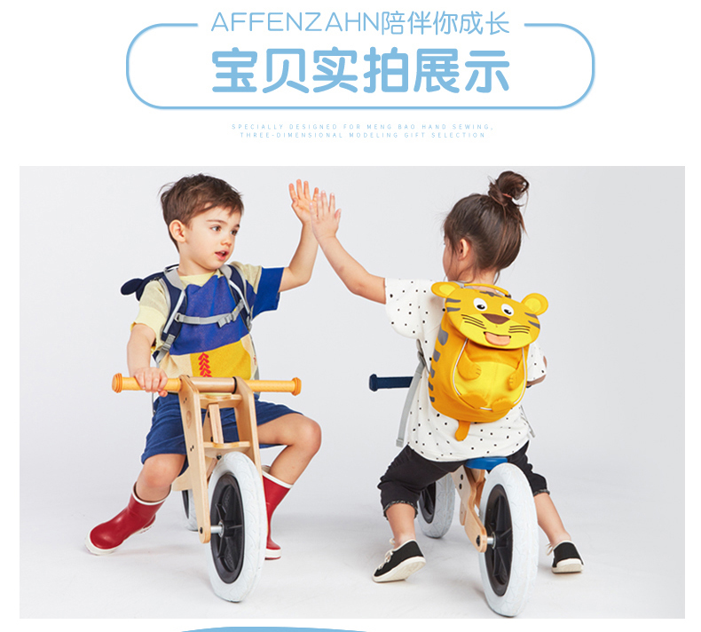 affenzahn德国品牌儿童进口书包卡通生肖老虎幼儿园可爱礼品背包男女宝宝小班动物防水反光书包 老虎提米 黄色